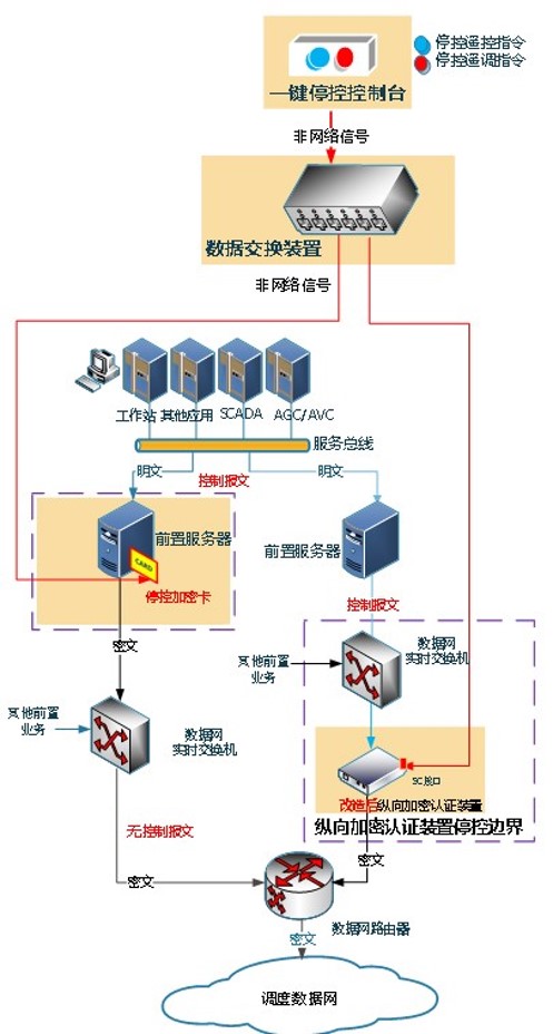 數據交換裝置:接收與識別控制臺??孛?,通過非網絡的方式將停控命令轉發送給對應的??卦O備,一般部署于調度自動化系統的機房。