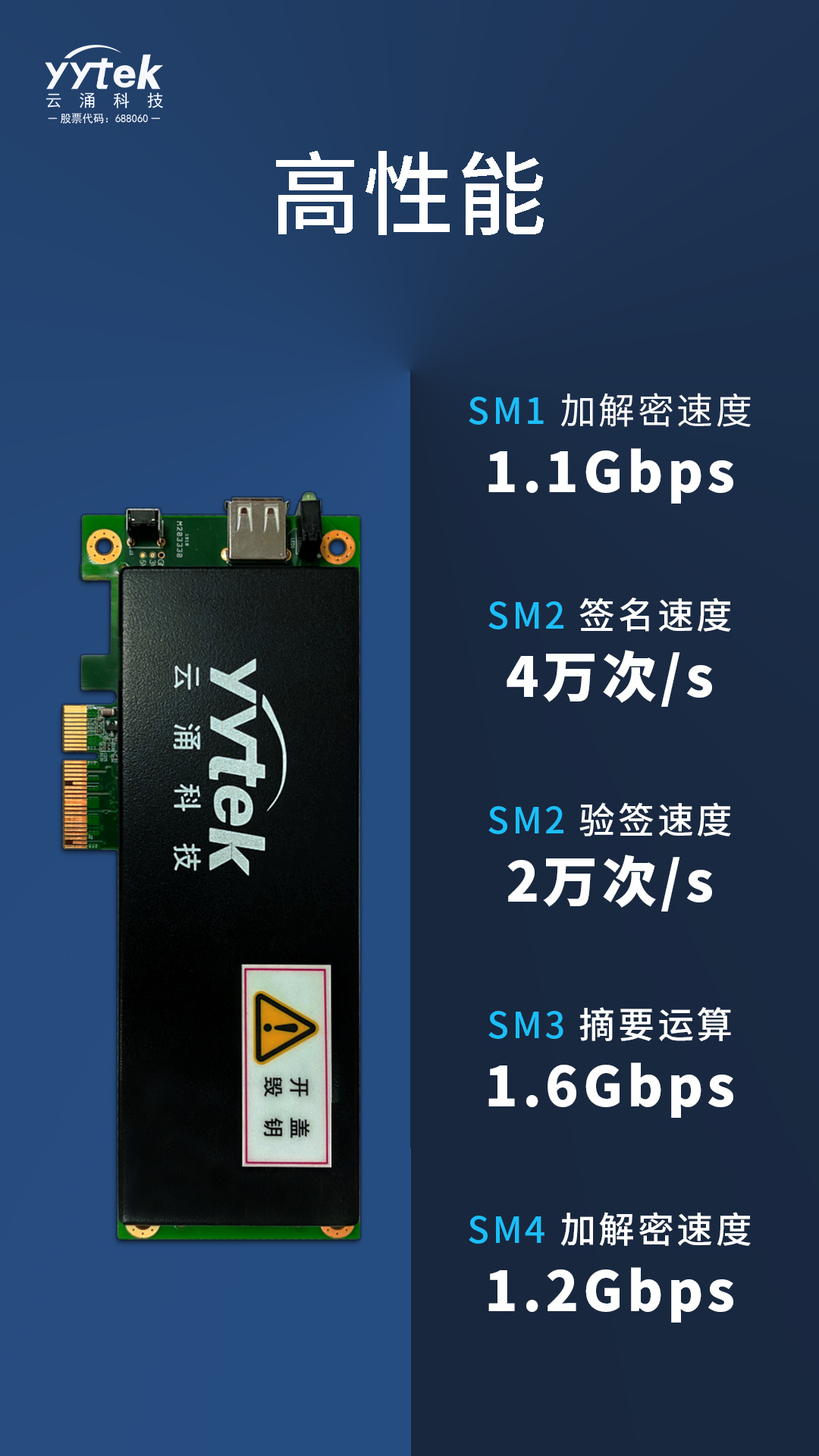 C1004密碼卡是云涌科技自主研發的,具備密鑰生成、密鑰管理、數據加解密、數字簽名、身份認證、密鑰協商,文件管理等功能的高性能密碼卡。該卡遵循《PCI密碼卡技術規范》和GM/T 0018-2012《密碼設備應用接口規范》,符合GM/T 0028-2014《密碼模塊安全技術要求》安全等級第2級。產品全面支持SM1、SM2、SM3、SM4等國密算法,能夠為各類安全平臺提供多線程、多進程和多卡并行處理的高速密碼運算服務,滿足應用系統數據的簽名/驗證、非對稱/對稱加解密、數據完整性校驗、真隨機數生成、密鑰生成和管理等功能的要求,保證敏感數據的機密性、真實性、完整性和抗抵賴性,同時提供完全、完善的密鑰管理機制。