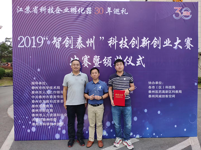 在大眾創業,萬眾創新的號召下,公司積極報名參加2019年“智創泰州”科技創新創業大賽暨第七屆“創業江蘇”科技創業大賽,經過專家評審、復賽篩選等環節成功晉級進入決賽。