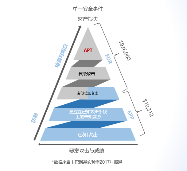 傳統(tǒng)的端點安全防護(hù)主要是靠殺毒軟件,通過病毒特征碼匹配進(jìn)行本地查殺,屬于單機(jī)被動防御產(chǎn)品。之后的EPP(端點保護(hù)平臺)雖然作為平臺級端點主動防御解決方案并在企業(yè)廣泛應(yīng)用,但該產(chǎn)品還是采用了防御型技術(shù),難以應(yīng)對復(fù)雜攻擊和高級威脅。隨著終端泛在化,未來所有的網(wǎng)絡(luò)節(jié)點都將是終端,端點安全的關(guān)注點,已經(jīng)從單一安全防御轉(zhuǎn)移到更注重威脅發(fā)現(xiàn)和自動化處置能力,對自動化威脅檢測、響應(yīng)、處理、運維能力要求越來越高。在此基礎(chǔ)上,EDR應(yīng)運而生。