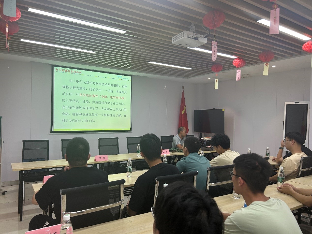 在培訓的第一講中,基于老化采集控制系統,主要圍繞"電路板的基礎設計和調試"展開,包含了電子元器件基礎知識、PCB技術與焊接工藝以及原理圖設計案例等內容。第二講是嵌入式軟件開發及調試的介紹,第三和第四分別是自動化測試管理系統和測試治具等相關內容。參與學習的有來自泰州學院、泰州職業技術學院以及泰順社區的眾多大學生。