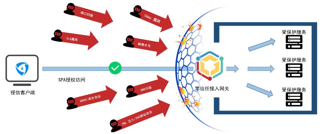 ?嚴格的終端單包敲門機制,確保只有認證過的用戶及設備才能訪問受保護服務;